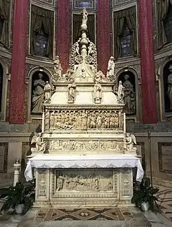 Ab 1597 ersetzte Floriano Ambrosini die gotische Kapelle von 1413 durch einen Neubau. Von 1613 bis 1615 malte Guido Reni das Deckenfresko über der Arca.