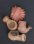 - Gruben ohne Mauerwerk, neben denen Eisenkeile entdeckt wurden, die auf die Verwendung von Holzkonstruktionen zur Beerdigung der Toten hinweisen.