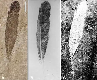 - ↑ Ryan M. Carney, Helmut Tischlinger, Matthew D. Shawkey: Evidence corroborates identity of isolated fossil feather as a wing covert of Archaeopteryx. Scientific Reports, Band 10, 2020, Artikel-Nummer: 15593, doi: 10.1038/s41598-020-65336-y