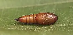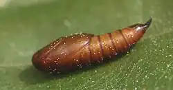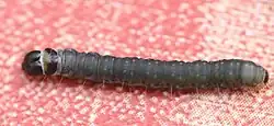 Die Raupen sind weißlich grau bis dunkel blaugrau gefärbt und haben einen schwarzen Kopf. Der Nackenschild ist dunkelbraun bis schwarz. Sie erreichen eine Länge von etwa 2 cm.