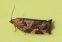 Brauner Laubholzwickler (Archips xylosteana) auf einem Eichenblatt | ||||||||||||