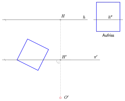 - c) Der Aufriss wird seitlich so angelegt, dass auf derselben Gerade liegt wie .
