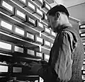 Infolge des millionenfachen Leides vervielfältigte sich auch die Zahl der Aktenvorgänge mit insgesamt rund 45 Millionen Karteikarten und etwa 120 Millionen vermittelter Nachrichten.[1] Bereits im Oktober 1939 erhielt das IKRK von IBM kostenlos Lochkartentechnik und Personal zur Verfügung gestellt, um Klassierungen und andere Informationsverarbeitungen zu automatisieren.[16] Angesichts der Datenflut, die von circa 3000 Mitarbeitenden bewältigt wurde, führte das Archiv 1942 ein neues Ablagesystem ein.[1] Die Anstrengungen wurden 1944 mit einem zweiten Friedensnobelpreis gewürdigt.