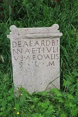 - ↑ CIL XIII, 07848 Deae Ardbi/nnae T(itus) Iuli/us Aequalis / s(olvit) l(ibens) m(erito)