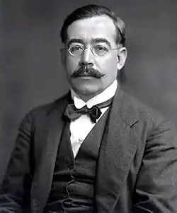 Der Lyriker, Essayist und Erzähler Leopoldo Lugones (1874–1938), der stark von Darío beeinflusst war, wird oft zu den bedeutendsten Vertretern des argentinischen Modernismo (Generación del Centenario) gerechnet; doch setzt er sich auch mit dem Criollismo und der nationalen Thematik auseinander und ist vor allem als Vorläufer der modernen fantastischen und Science-Fiction-Literatur und der Mikroerzählung bekannt. In seinem Werk herrscht zunächst ein üppiger lyrischer, fast halluzinatorischer, später ein objektiver Stil vor.[10] Damit setzte er Standards für einen „guten“ Stil und die Reinheit der Sprache.[11] Die Erzählungen seines erfolgreichen Bandes La guerra gaucha (1905) über den Guerillakrieg gegen die Spanier 1815–1825 wurden 1941 in Argentinien verfilmt. Zu Beginn der 1920er Jahre versuchten er und der Dichter, Historiker und Politiker Ricardo Rojas (1882–1957), Autor der ersten argentinischen Literaturgeschichte, eine Reihe von Werken der argentinischen Literatur zu kanonisieren und bauten sie erfolgreich in die Lehrpläne ein, um ihre Bekanntheit und ihren Anspruch auf internationale Geltung zu festigen. Während Rojas dabei auch auf Traditionen der Indigenen zurückgriff, orientierte sich Lugones, obwohl Anarchist, am Katholizismus und Nationalismus und unterstützte den Staatsstreich von 1930.