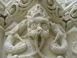 - Die innere Archivolte zeigt schlanke Engelsfiguren, die eine Mandorla in Händen halten, wie es bei zeitgenössischen Darstellungen der Himmelfahrt Christi häufiger zu sehen ist; die Köpfe der Engel und die Christusfigur in der Mandorla wurden wahrscheinlich in der Revolutionszeit abgeschlagen.