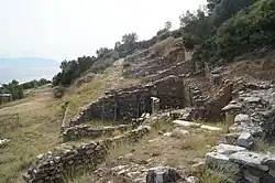 70 m südlich der breiten Straße entdeckten die Archäologen eine etwa 50 m lange Stoa. Etwa 75 m südwestlich, südlich der modernen Straße Ethniki Odos 2, fand man weitere Gebäudereste. Auch nördlich der Straße im Hügel, der von der modernen Straße angeschnitten wird, sieht man antike Hausmauern. Weitere Gebäudereste befinden sich etwa 300 m östlich der Stoa unterhalb der Straße. Östlich der Stadt fand man den Friedhof. Hier fand man monolithische Steinsarkophage aus dem 5. Jahrhundert v. Chr. Unter den Beigaben gab es Keramik aus weiten Teilen Griechenlands. Jedoch überwiegen die attischen Keramiken.
