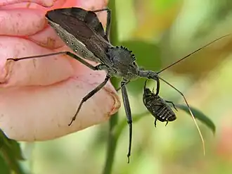 Die grau bis braun gefärbten Wanzen werden 28 bis 36 Millimeter lang, wobei die Weibchen größer als ihre männlichen Artgenossen werden.[1] Sie sind damit die größten Raubwanzen in den Vereinigten Staaten.[1] Die Wanzen besitzen einen gezackten halbkreisförmigen Kamm auf dem Halsschild, welcher die Art in den USA unverwechselbar macht.[2][1] Die Nymphen haben einen rot gefärbten Hinterleib.