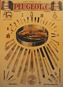 Die unternehmerischen Tätigkeiten der Familie Peugeot lassen sich bis ins 15. Jahrhundert verfolgen. 1776 betrieb die Familie Peugeot in Herimoncourt eine Wassermühle und eröffnete später eine Eisengießerei, welche die Grundlage für den späteren metallverarbeitenden Betrieb bildete. Der Betrieb stellte neben Uhrfedern, Korsettstangen und verschiedenen Werkzeugen wie Metallsägen und Sägeblättern später auch Bügeleisen und Kaffeemühlen her.