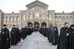 - ↑ The Armenian Church Today: Current Structure. ( des vom 13. Dezember 2020 im Internet Archive) Info: Der Archivlink wurde automatisch eingesetzt und noch nicht geprüft. Bitte prüfe Original- und Archivlink gemäß Anleitung und entferne dann diesen Hinweis. Website der „Armenian Church – Mother See of Holy Etchmiadzin“, abgerufen am 5. Juli 2016 (englisch).