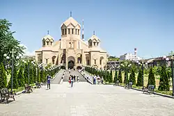 Die Armenische Apostolische Kirche (armenisch Հայ Առաքելական Եկեղեցի, Transkription ostarmenisch: Haj Arakelakan Jekeghezi; offizielle Bezeichnung auch: armenisch Հայաստանյայց Առաքելական Սուրբ Եկեղեցի, Transkription ostarmenisch: Hajastanjajz Arakelakan Surb Jekeghezi, Heilige Apostolische Kirche der Armenier) ist eine altorientalische Kirche mit heute neun[1] Millionen Armeniern in zwei Katholikaten (Etschmiadsin, Sis), zwei Patriarchaten (Jerusalem, Konstantinopel) und rund 30 Diözesen, davon neun in Armenien.