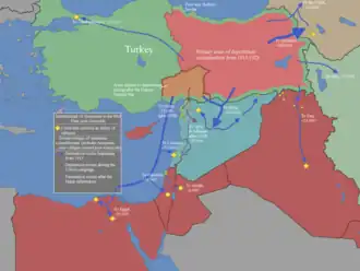- ↑ Vertrag von Moskau (1921) 16. März 1921 und Vertrag von Kars. Enddatum hierfür 11. März 1928, wobei die türkische Seite die Rückkehr von Armeniern verhinderte. Große Teile jener Gebiete waren erst 1878 durch den Frieden von San Stefano russisch geworden. Schon damals gab es eine Optionslösung mit Umsiedlungsmöglichkeit.
