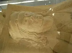 - ↑ Inv. 81.59. – Leihgabe der St.Ansgarii-Gemeinde. – Länge 209 cm. – Kalksandstein, ursprünglich bemalt (rote Farbspuren am Gewand, blaue am Futter).