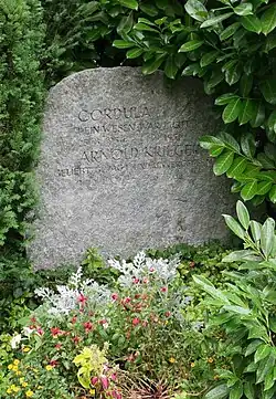 Arnold Krieger wurde auf dem Waldfriedhof Darmstadt (Grabstelle: L 6a 25c) bestattet.[4]