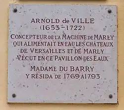 De Ville wohnte von 1684 bis 1708 in dem eigens für ihn vom König in Auftrag gegebenen „Wasserpavillon“ (Pavillon des Eaux), dem späteren Schloss Du Barry am Chemin de la Machine, der von Voisins nach Louveciennes führenden Straße. Von 1769 bis 1793 wurde das Haus von Madame du Barry bewohnt, der Mätresse Ludwigs XV.