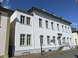 Im Jahr 1794 wurde Arnsberg Zufluchtsort des vor den Truppen der französischen Republik auf die rechtsrheinische Seite geflohenen Kölner Domkapitels. Auch Teile des Kölner Domschatzes, insbesondere der Dreikönigenschrein, wurden bis 1804 im Kloster Wedinghausen aufbewahrt. Das Domkapitel wählte dort 1801 den österreichischen Erzherzog Anton-Viktor zum neuen Erzbischof und letzten Kurfürsten. Politisch spielte diese Wahl aber schon keine Rolle mehr.[14] Im Zuge der Auflösung des Alten Reiches und des Endes der geistlichen Staaten (→ Säkularisation) fiel das Herzogtum Westfalen mit der Stadt Arnsberg im Jahr 1802 an die Landgrafschaft Hessen-Darmstadt. In dieser Zeit war Arnsberg Garnisons- und Regierungsstadt. Zusammen mit dem ehemaligen Herzogtum Westfalen fiel die Stadt dann 1816 nach der napoleonischen Epoche und dem Wiener Kongress an Preußen. Seither gehörte sie zur Provinz Westfalen. Sie wurde Kreisstadt und Sitz des Regierungspräsidenten von Arnsberg. Bereits in der hessen-darmstädtischen Zeit begann eine deutliche Zunahme der Bevölkerung. Dies machte eine Ausweitung des Stadtgebiets nötig. In dieser Zeit begann die Bebauung der heutigen Jäger- und Bergstraße. Dadurch entstanden etwa 32 neue Häuser.