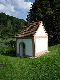Zwischen Lohmühle und Hintermühle liegt das kleine Dorf Schambach mit einer von dem Graubündner fürstbischöflichen Baumeister Giovanni Domenico Barbieri 1755/56 erbauten Rokoko-Wallfahrtskirche „Heilig Kreuz“ und einer barocken Kapelle, der „Brünndlkapelle“ am sogenannten Gnadenbrünnlein, wo ein Seitenbach der Schambach entspringt und ein Kreuzpartikel aufgefunden worden sein soll.