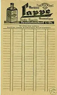- Apotheker Th. Lappe: Lappe‘s Aromatique, gegr. 1828, Der eigentliche (a)echte Aromatique, später geführt durch J. Lappes Erben