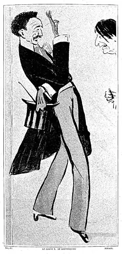 Montesquiou war der Spross einer Gascogner Familie aus altem Adel, zu seinen Vorfahren zählen der Marschall von Frankreich Blaise de Montesquiou und der durch Dumas’ Roman Die drei Musketiere weithin bekannte d’Artagnan. Montesquiou stilisierte sich als Dandy, inszenierte seine Auftritte in der Gesellschaft, wo er sich zwischen Aristokratie, Hochfinanz, Demi Monde und der Szene der Künstler, Literaten und der Musik bewegte, als lebendiges Kunstwerk.