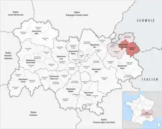 ![]() Lage des Arrondissements Bonneville in der Region Auvergne-Rhône-Alpes | |