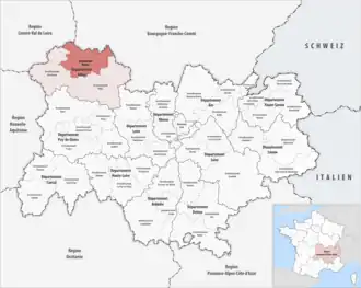 ![]() Lage des Arrondissements Moulins in der Region Auvergne-Rhône-Alpes | |