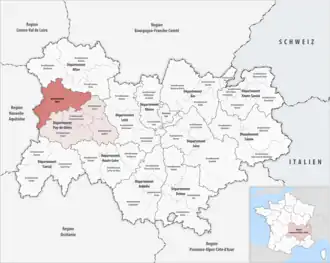 ![]() Lage des Arrondissements Riom in der Region Auvergne-Rhône-Alpes | |