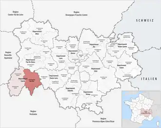 ![]() Lage des Arrondissements Saint-Flour in der Region Auvergne-Rhône-Alpes | |