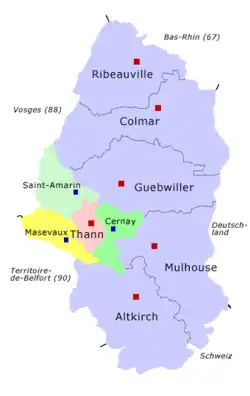 Im Zuge der Wiedereingliederung des Elsass nach Frankreich am 28. Juni 1919 (Vertrag von Versailles) wurde aus dem Kreis Thann das Arrondissement Thann gebildet.