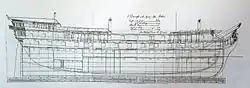 | Design | 26 × 24-Pfünder | 28 × 12-Pfünder | 4 × 6-Pfünder | 6 × 6-Pfünder | 64 Kanonen (250 kg) |
