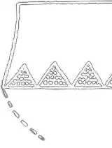 - Vasen mit rundem Boden aus feinkörnigem Ton.[7] Hierzu gehören auch Kielschüsseln und Teller mit charakteristischer Verzierung aus eingeritzten Dreiecks- oder Rautenmustern, oft gepunktet oder schraffiert und in horizontalen Bändern angeordnet.