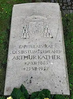 Nach einem Aufenthalt in der Erzdiözese Paderborn wurde er seit August 1946 als Seelsorger des Marienheims in Rulle bei Osnabrück tätig. Nach dem Tod des Bischofs von Ermland Maximilian Kaller in Frankfurt am Main am 7. Juli 1947 wurde Arthur Kather am 11. Juli 1947 von Bruno Schwark zum Kapitularvikar von Ermland bestimmt. Papst Pius XII. bestätigte diese Wahl, so dass Arthur Kather fortan Ermland auf der Fuldaer Bischofskonferenz vertrat. Im Juni 1949 wurde die Ermlandzentrale von Rulle nach Honeburg bei Osnabrück-Haste verlegt. Im Februar 1949 ernannte der Heilige Stuhl Kather zum Päpstlichen Hausprälaten und im Dezember 1953 zum Apostolischen Protonotar. Im Dezember 1956 ernannte er vier ermländische Geistliche, Gerhard Fittkau, Paul Hoppe, Ernst Laws und Josef Lettau, zu Konsistorialräten.