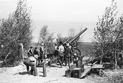 21-cm-schwerer Mörser 18 einer Küstenbatterie am Polarkreis, Lappland 1941 -