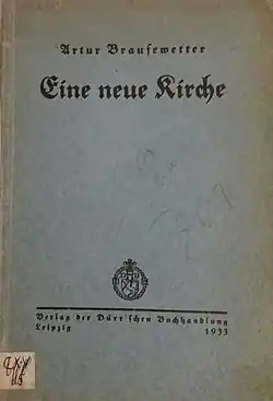 - ↑ Artur Brausewetter: Kurzes Vorwort. In: Eine neue Kirche. Verlag der Dürr´schen Buchhandlung, Leipzig 1933.