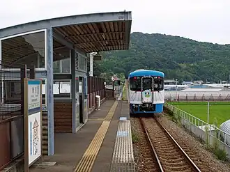 Dieseltriebwagen verlässt den Haltepunkt Tōnohama | |||||||||||||||||||||||||||||||||||||||||||||||||||||||||||||||||||||||||||||||||||||||||||||||||||||||||||||||||||||||||||||||||||||||||||||||||||||||||||||||||||||