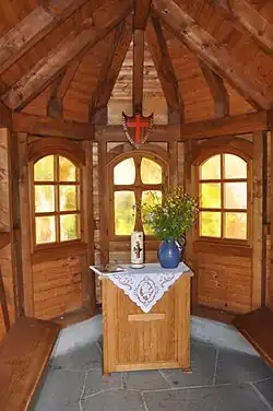 Die Kapelle ist in Holzständerbauweise errichtet, Dach und Wände sind mit Schindeln bedeckt. Die Glocke in dem kleinen Dachaufbau ist eine immerwährende Leihgabe der katholischen Pfarrei Rettenberg.