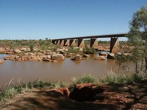 | Linke Nebenflüsse | Monkey Creek, Brumby Creek, Ethel River, Turkey Creek, Glen Ross Creek, Gorge Creek, Mucalana Creek, Pingandy Creek, Little Pingandy Creek, Fords Creek, Wandarry Creek, Stockyard Creek, Gorge Creek, Irregully Creek, Sandy Creek, Henry River | |