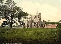 - ↑ Castle ruins (including 2 isolated towers at south east and south west angles of outer wall). In: The National Heritage List for England. English Heritage, 2011, abgerufen am 21. August 2025 (englisch).