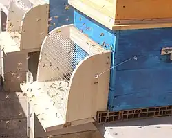- ↑ BienenSchweiz/ApiSuisse: Bauanleitung für gittergeschütztes Flugloch. (PDF; 316 kB), abgerufen am 24. Mai 2025.