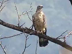 Weitere Feinde dieser Hornissenart sind Wespenbussarde (Gattung Pernis), besonders der Schopfwespenbussard (Pernis ptilorhynchus), der sich wie die anderen Arten der Gattung auf staatenbildende Hautflügler spezialisiert hat und über ein dichtes Gefieder verfügt, wodurch er vor Stichen der Hornissen gut geschützt ist. Die Vögel dieser Gattung können sich dadurch auch ungehindert den Nestern der Hornissen nähern und diese anschließend ausplündern.[12]