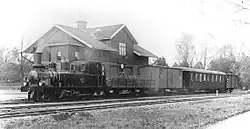 Bahnhofsgebäude in Askersund mit der 1905 erworbenen namenlosen Lok Nr. 5