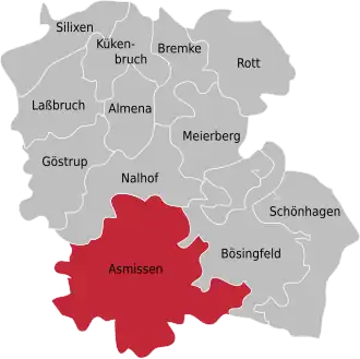 Asmissen ist eine kleine Ortschaft in Ostwestfalen-Lippe mit 2.137 Einwohnern (Stand 31. Dezember 2023) und ist ein Ortsteil der Gemeinde Extertal im Kreis Lippe in Nordrhein-Westfalen.[2]