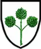 Das Wappen weist auf silbernen Grund einen grünen Espenzweig mit drei Blättern.