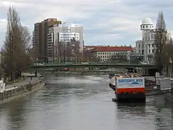 Die Aspernbrücke überquert den Donaukanal in Wien und verbindet die Bezirke Innere Stadt und Leopoldstadt.