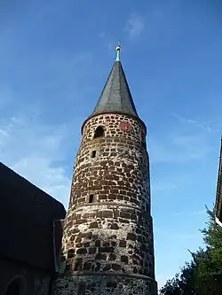 - St.-Elisabeth-Kirche – Die St.-Elisabeth-Kapelle wurde wahrscheinlich zu Ehren der Heiligen Elisabeth von Thüringen kurz nach deren Heiligsprechung, um 1300, als Kapelle erbaut. 1496 wird die St.-Elisabeth-Kapelle zur Kirche erhoben, es erfolgt der Umbau des Wart- oder Römerturmes zum Kirchturm. 1841 zerspringt die große Glocke. 1864 geschieht dieses Unglück nochmals. Im Zweiten Weltkrieg wird die Kirche durch Brandbomben getroffen und brennt bis auf die Grundmauern nieder. Der Wiederaufbau erfolgt in den Jahren 1949/50. Das 1951 erneuerte Geläut ist bis auf den heutigen Tag zu hören.