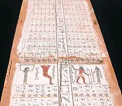 Unter Sesostris III. widmete man sich der Neustrukturierung des sogenannten Nutbuches, das die Ägypter „Grundriss des Laufes der Sterne“ nannten und dessen Anfänge in die Thinitenzeit datiert (Anfang des dritten Jahrtausends v. Chr.) wird.[5] Die archäologische Fundlage ist für das Neue Reich in den Tempeln und Gräbern wesentlich besser als in der Vorzeit belegt. Ob die Beschäftigung mit den Phänomenen des Himmels in dieser Zeit intensiviert wurde, kann daraus jedoch nicht geschlossen werden. Nach wie vor waren Wissenschaft und Religion weiter als eine Einheit verbunden. Die neu erfundenen Wasseruhren schmückten als Ergänzung die astronomischen Darstellungen. Ähnliche kosmologische Bezüge sind in den Tagewählkalendern vorhanden.