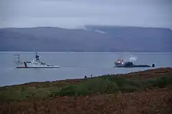 Die auf Grund gelaufene HMS Astute wird vom NotschlepperAnglian Prince freigeschleppt