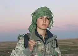 - ↑ Patrick Lion: Female soldier dubbed the 'Kurdish Angelina Jolie dies' while fighting ISIS in Syria. In: Mirror. 8. September 2016, abgerufen am 30. Dezember 2024 (englisch).