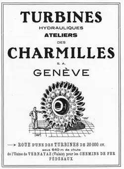 - ↑ Charmilles (Hrsg.): Turbines hydraulique. S. 6–7 (französisch, Online – Prospekt aus den 1950er-Jahren).