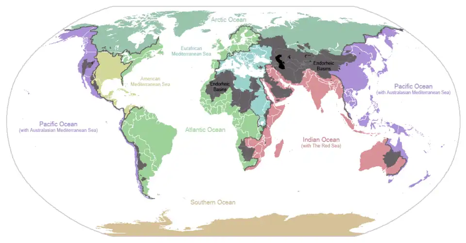 Um eine einfache Anbindung an den Pazifik und den Indischen Ozean zu schaffen, wurden Kanäle einerseits vom Amerikanischen (Panamakanal, seit 1914) und andererseits vom Europäischen Mittelmeer (Sueskanal, seit 1869) gebaut. Beide Kanäle trennen dabei kontinentale Landmassen voneinander.