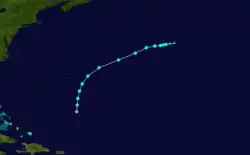 Hurrikan Drei, der zuerst am 28. August im mittleren Atlantik beobachtet wurde, zog mit Windspitzengeschwindigkeiten von 195 km/h nordwärts. Er kam zum Stillstand und driftete dann in der Nähe von Bermuda südlich ab. Starker Wind und Brandung richteten dort mäßige Schäden an. Der Hurrikan drehte anschließend nach Westen und dann nach Norden ab, um schließlich auf einem östlichen Kurs am 10. September zum außertropischen Sturm zu werden.